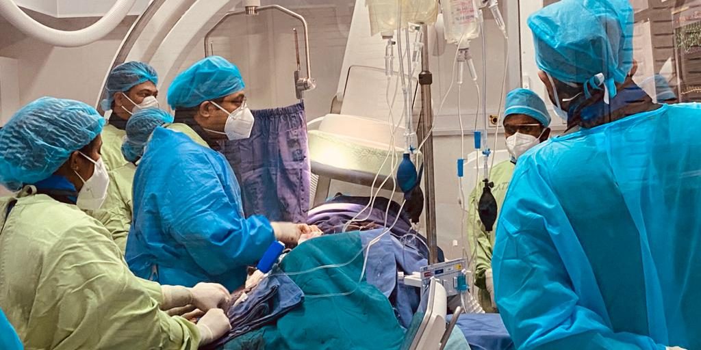 The procedure is performed by inserting a catheter with the valve into the body through a small incision and navigating it to the affected valve, the patient remains fully conscious during the procedure, which only lasts about 90 minutes. TAVI allows for a shorter recovery time, mobilisation within 24 hrs and reduces the risk of infection, stroke, need for dependence on ventilators. Typically, despite their age or multiple medical issues, patients can be discharged from the hospital in 3 days.